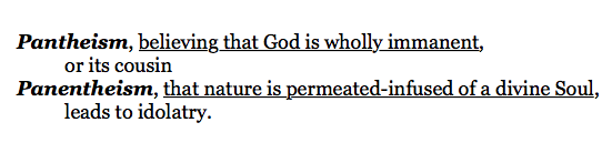 Pantheism or panentheism, call it what you wish, philosophically intrudes into who Scripture reveals God to be (Colossians 2:8). In a pantheistic view of the cosmos the worlds of above and below meld into one, the idea of divine immanence (God’s down here) consuming any idea of divine transcendence (God’s up there).