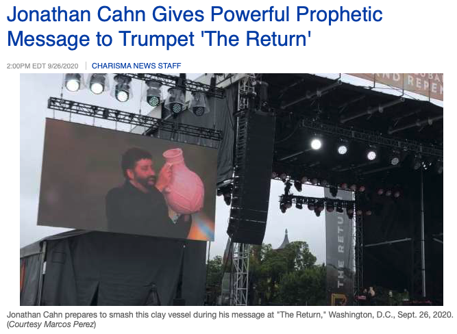 Cahn’s “The Return” event may have been a high-scale marketing ploy to launch his latest new book, The Harbinger II, which continues on with his “prophecies” concerning America. The theme of Cahn’s “prophecies” merge Old Testament prophecies blending Israel with those of America. This is based on the classic Christian Right (Dominionist) mantra that “America is a Christian nation.” To this claim Cahn typically includes the addition of Old Testament prophecies about Israel, potent occult mysticism derived from visions, fictional narratives, occult lore, numerology, and other unbiblical sources. His theology matches up precisely with that of the New Apostolic Reformation (NAR), particularly his eschatology.